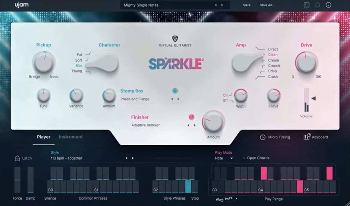 Part of UJAM’s growing Virtual Guitarist series, SPARKLE 2 features 30 musical styles and 350 phrases, offering producers and songwriters a polished and versatile tool for crafting professional rhythm guitar tracks. Each title in the series focuses on a specific playing style or genre, allowing users to expand their palette with electric and acoustic guitars tailored to different musical contexts. With selectable pickup and amp combinations, multiple playing techniques, and mix-ready effects, SPARKLE 2 provides dynamic electric guitar parts suited to pop, rock, funk, and beyond.